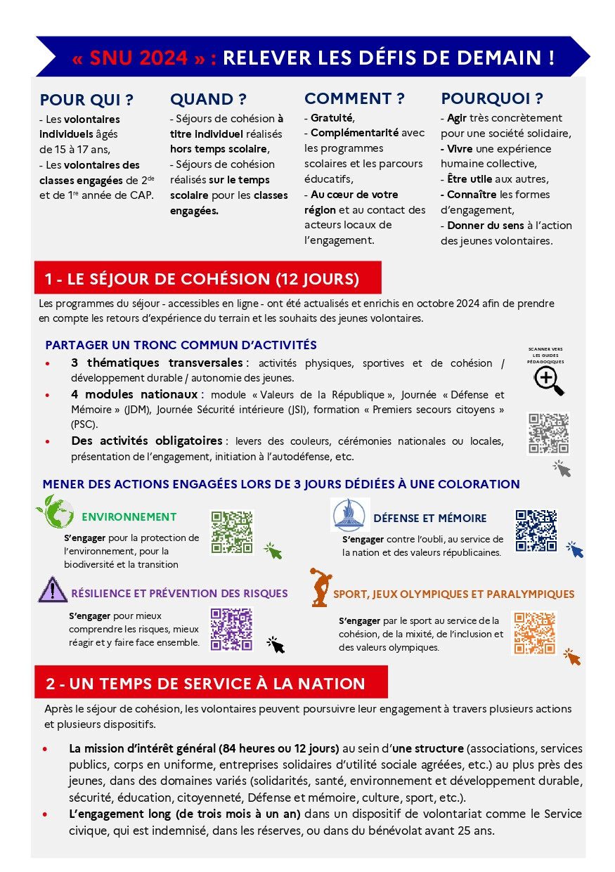 D'une durée de douze jours, ce dispositif gratuit permet aux volontaires de travailler sur plusieurs thématiques (environnement, défense et mémoire, sport..)