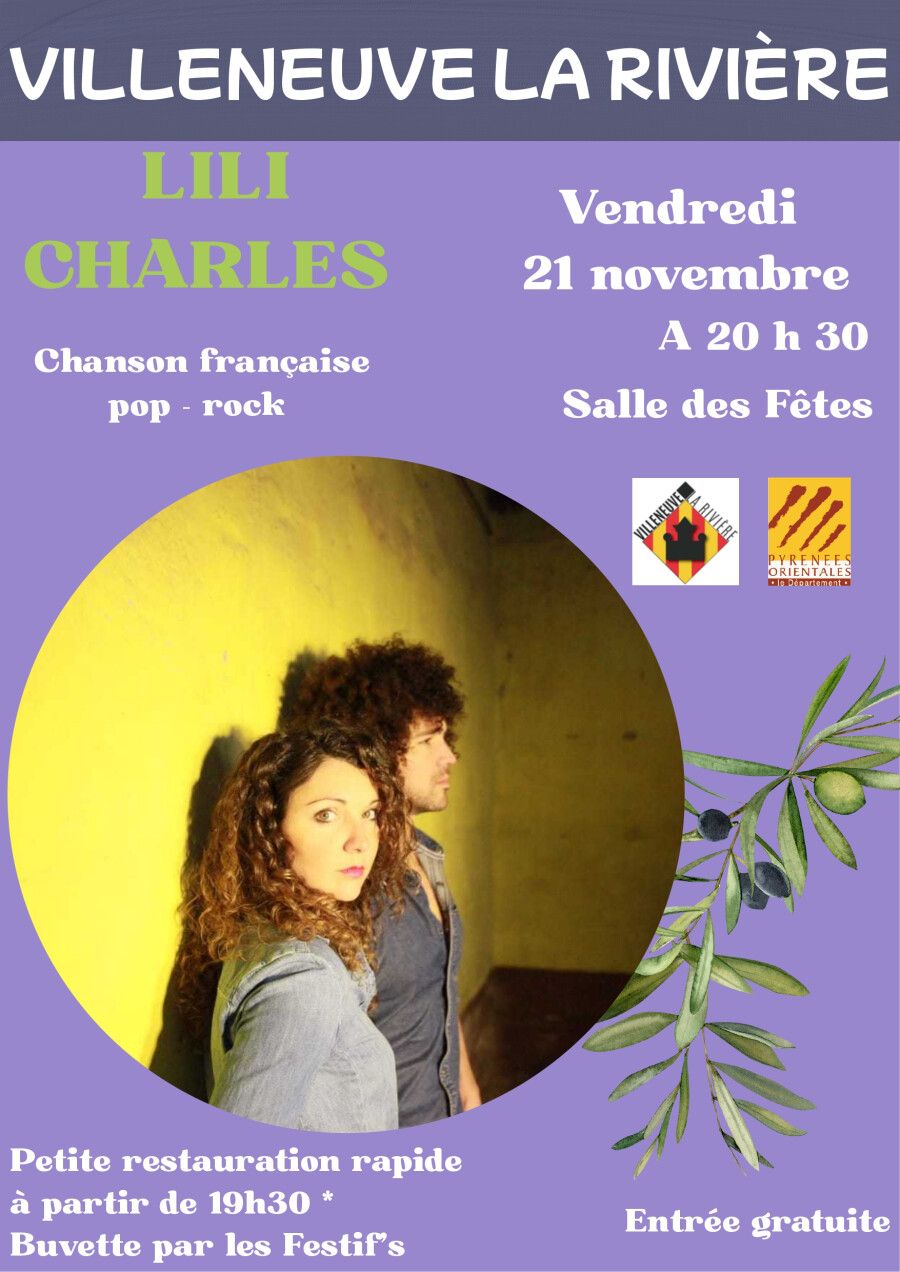 Lili et Charles sont frère et soeur. Ils se produiront en concert acoustique, chant, guitare et percussions dans une ambiance intime et rythmée avec des reprises pop, folk, rock et quelques compositions issues de leur premier album.