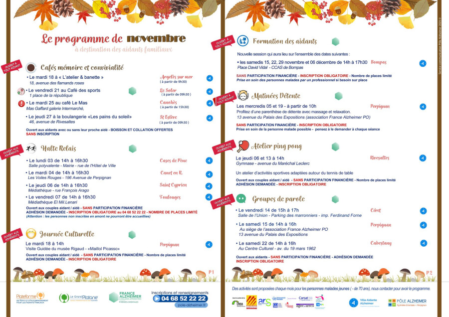 Dans le cadre du partenariat entre l'association France Alzheimer et le CCAS de Villeneuve, retrouvez le programme des animations prévues en novembre.