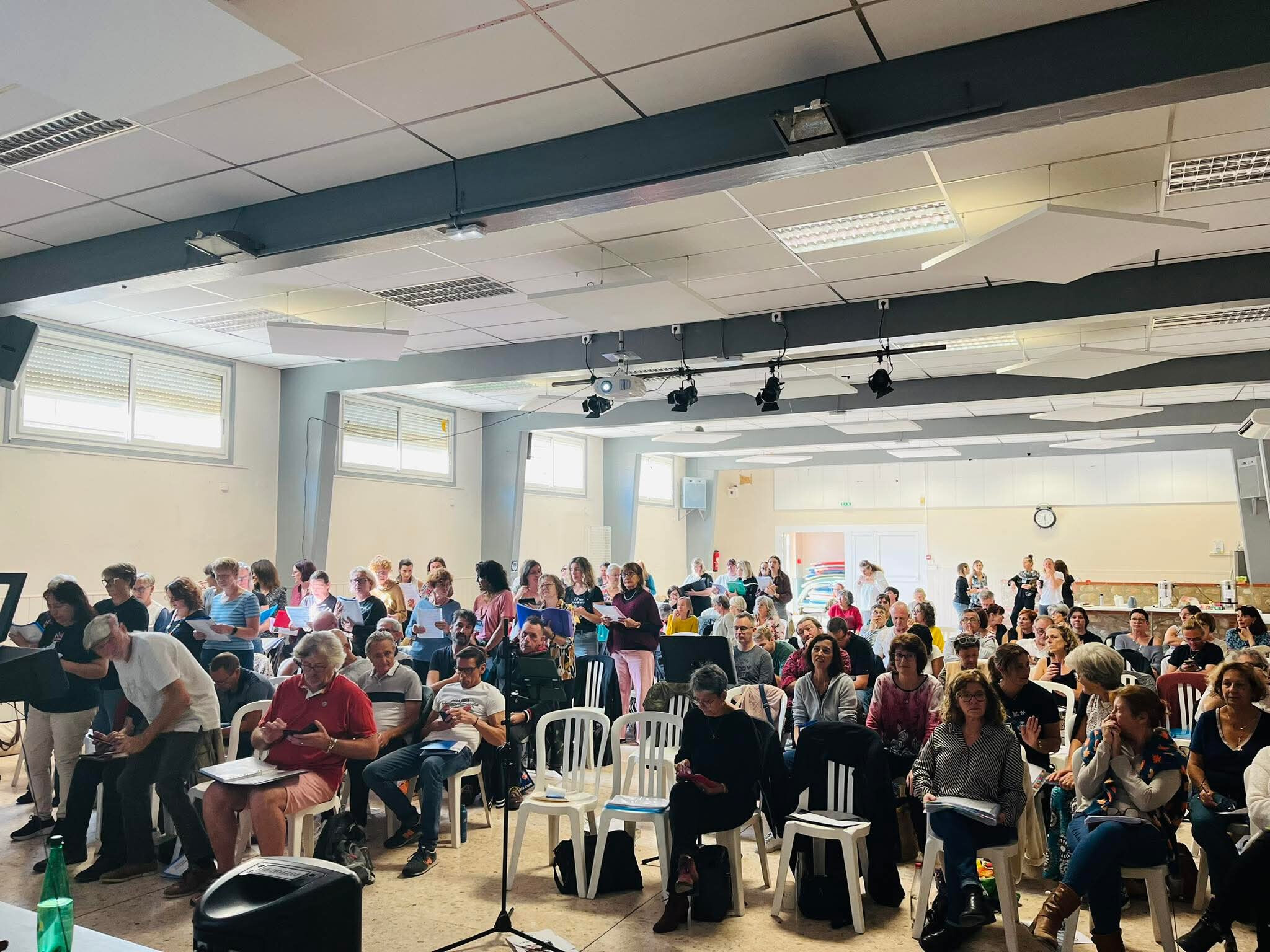 Dimanche 19 octobre la salle des fêtes de Villeneuve a accueilli une centaine de choristes pour une nouvelle répétition.