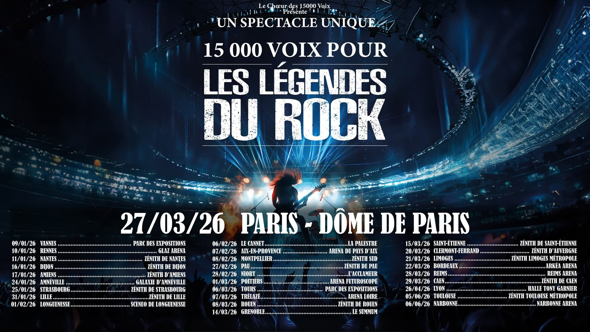 15.000 choristes répartis dans 30 Zéniths et arénas à travers la France vont rendre hommage aux grandes légendes du rock.