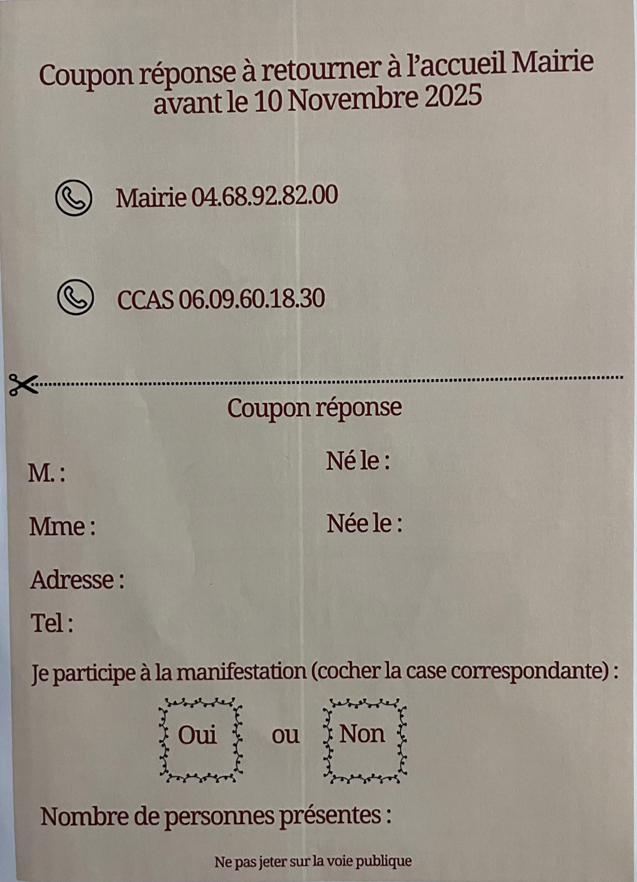 * Inscriptions accueil de la mairie ou par téléphone (04-68-92-82-00) au plus tard le mardi avant la collecte