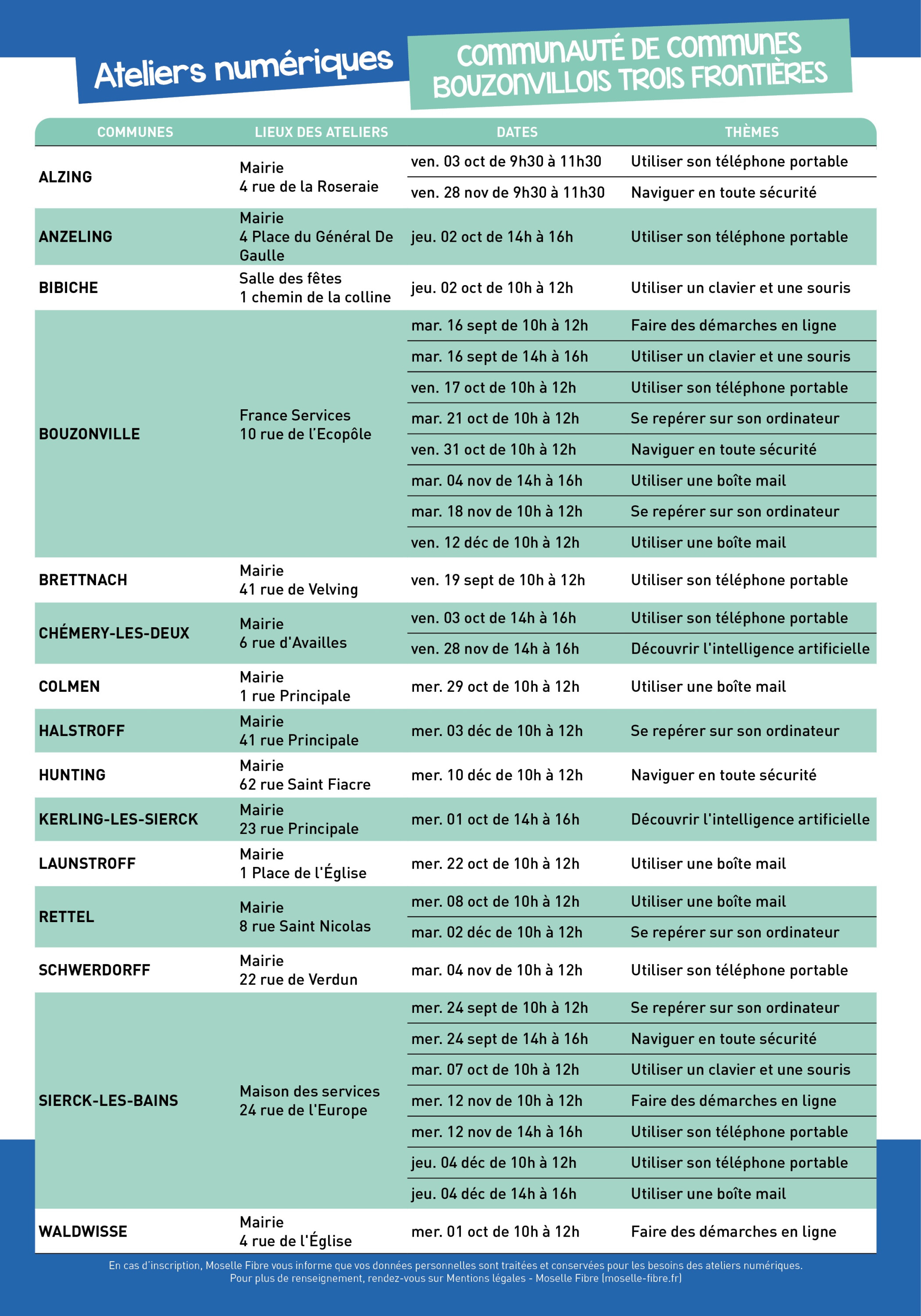 Les ateliers numériques reprennent à Bouzonville du 16 septembre au 12 décembre 2025 !