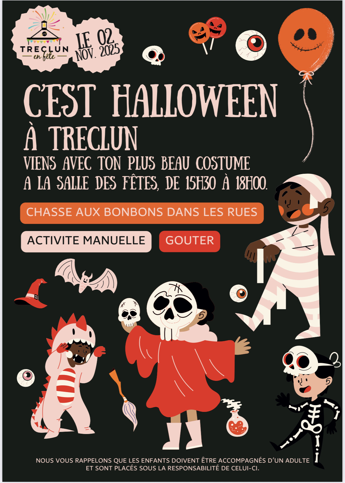 Tréclun en fête vous donne rendez-vous à la salle des fêtes à 15h30 pour un après-midi terrifiant :