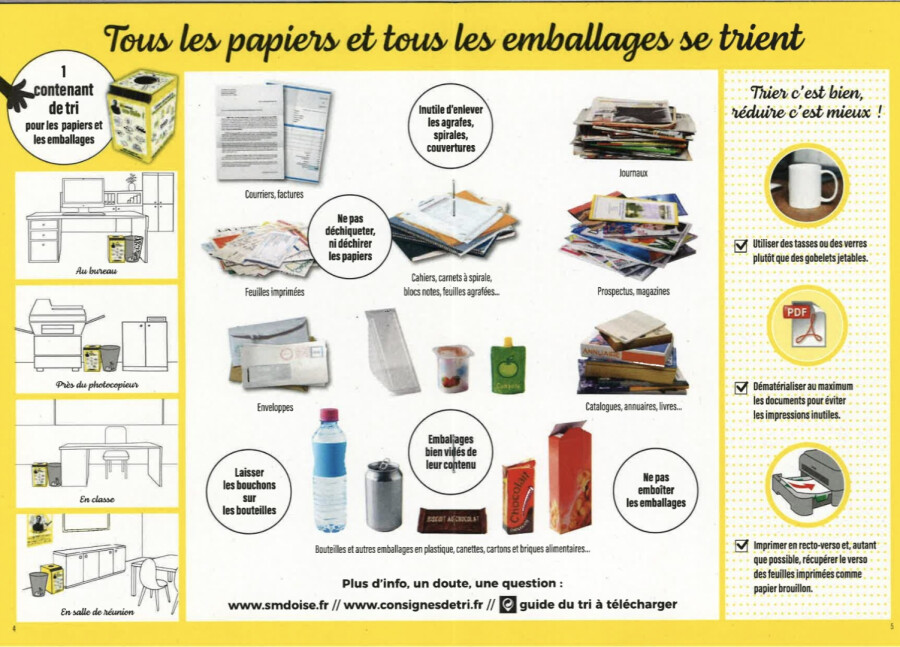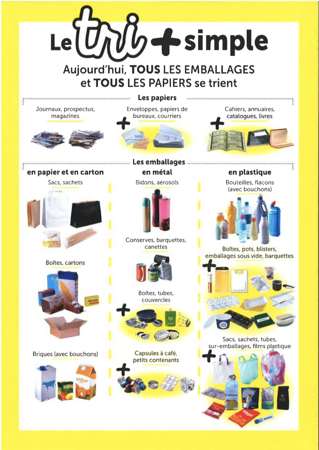 Vous trouverez donc ci-joint le document du SMDO qui vous aidera à effectuer le tri. Il est essentiel que nos déchets soient bien triés afin qu'ils soient valorisés. La CCPV nous a d'ailleurs précisé que nous ne devions pas emboiter les boites vides les unes dans les autres car il n'y a pas de machines pour les déboiter.