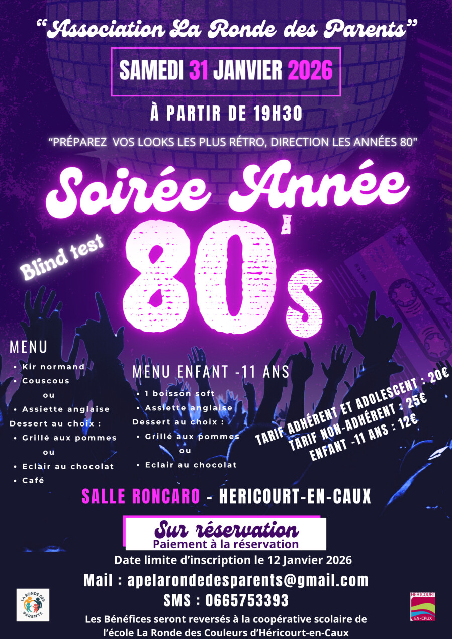 L'association vous propose une soirée "Année 80" pour financer une partie de la classe de découverte pour les enfants de l'école