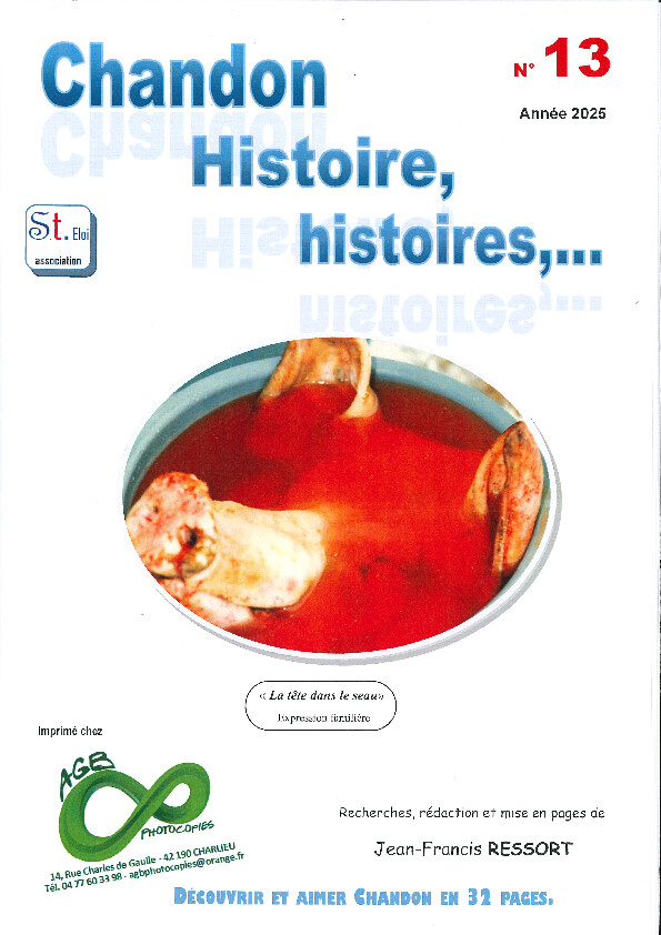 Très apprécié, ce bulletin bénéficie d'un lectorat fidèle et en renouvellement qui attend toujours avec impatience la suite de la collection. Bonne nouvelle puisque le numéro 13 vient d'être publié et est dès à présent disponible à l'achat, au prix de 5€. On le trouve à Charlieu chez AGB, à la maison de la presse, à la mairie de Chandon et bien sûr auprès des membres de l'association St Eloi; cette dernière sera aussi présente lors de la Rand'Automne, le 19 octobre à Chandon. "