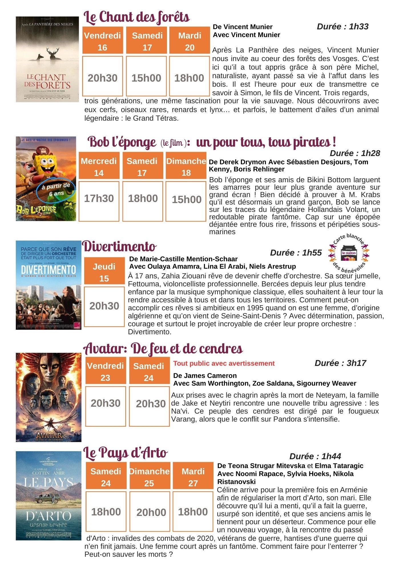 Voici le programme du 7 au 27 janvier 2026.