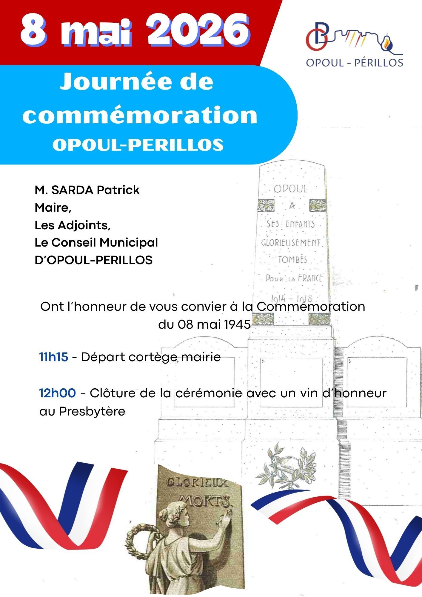 Un dépôt de gerbe aura lieu le 08 mai 2026 à 11h15, nous vous donnons rendez-vous devant la mairie.