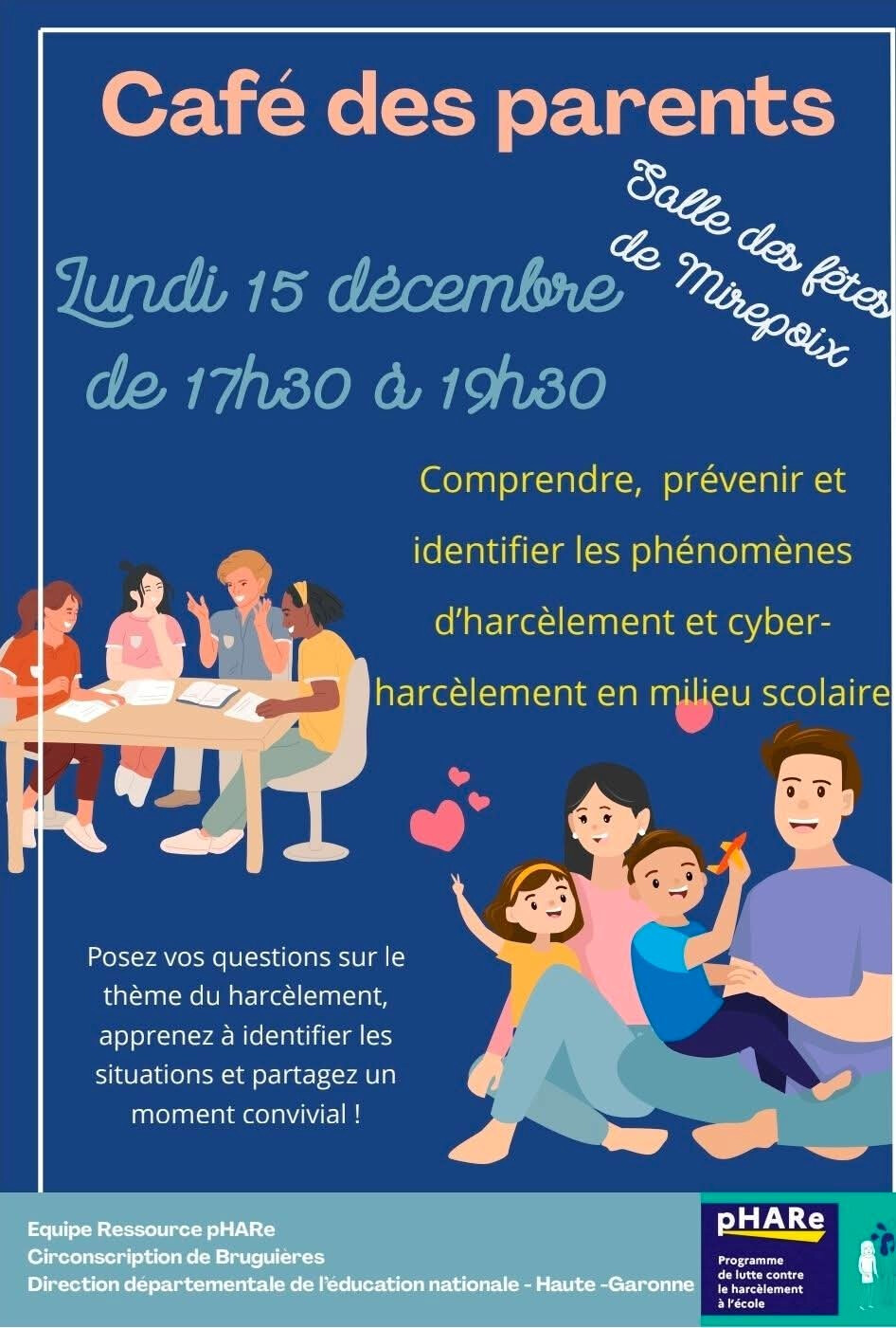 afin d'échanger sur les phénomènes d'harcèlement et de cyber-harcèlement en milieu scolaire afin de les comprendre, les identifier et les prévenir.