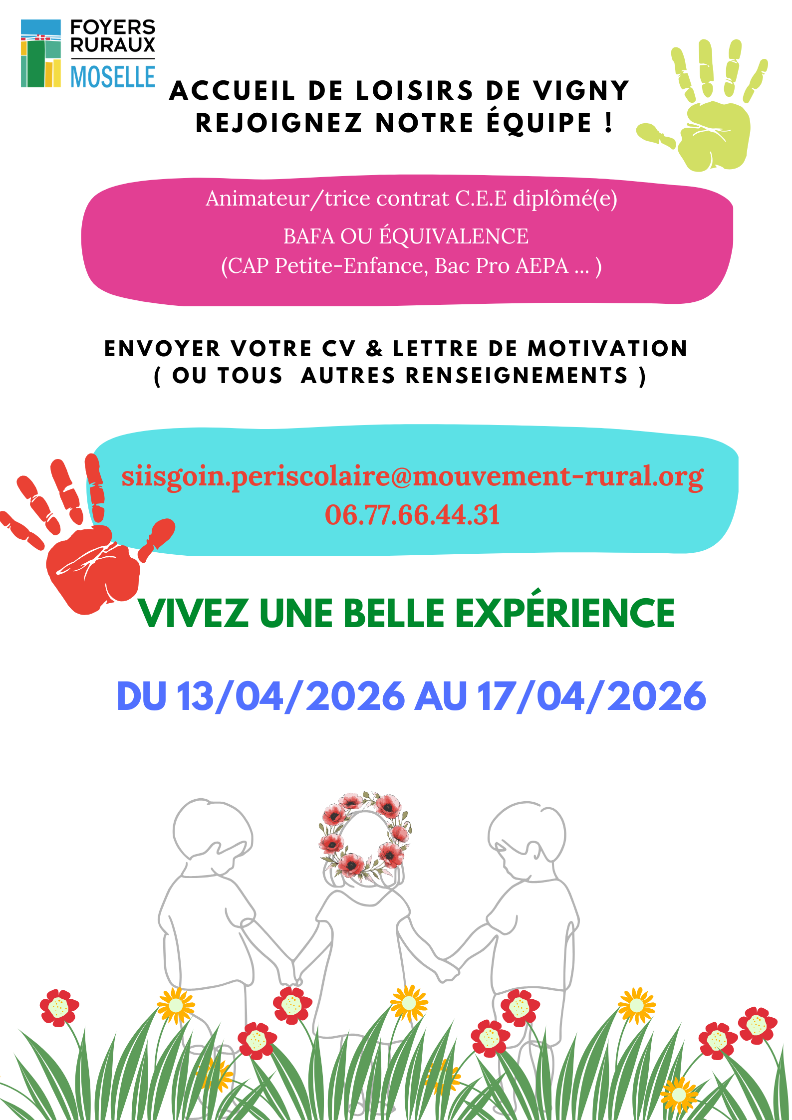 Du 13/04 au 17/04 : animateur/trice recherché(e) !