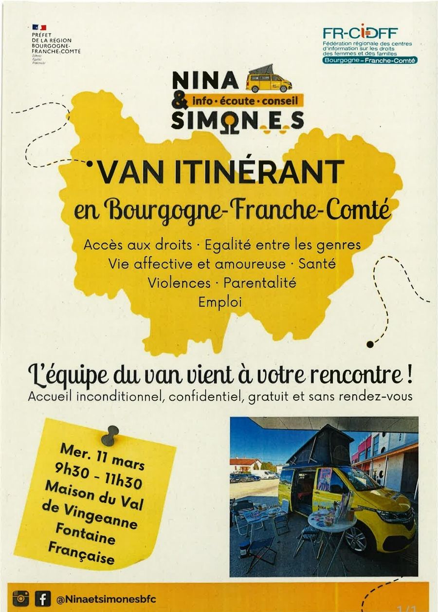 Mercredi 11 mars, retrouvez le Van itinérant NINA & SIMONES du CIDDF à Fontaine-Française