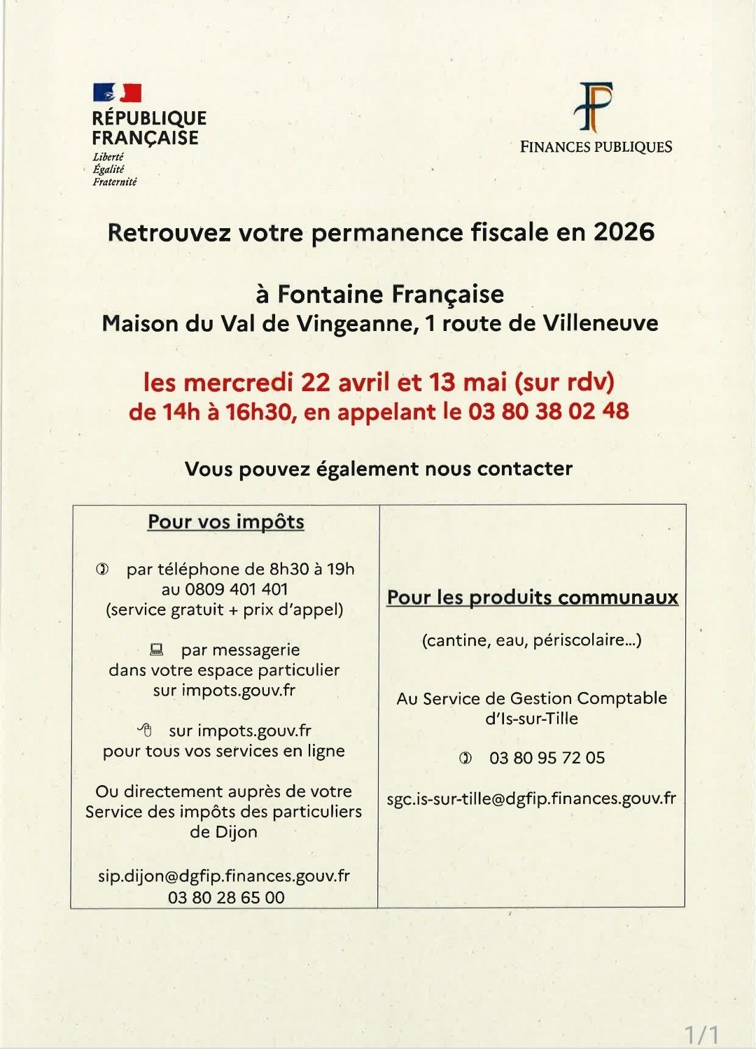 ✅Accueil à Mirebeau et Fontaine du 7 au 10 avril
