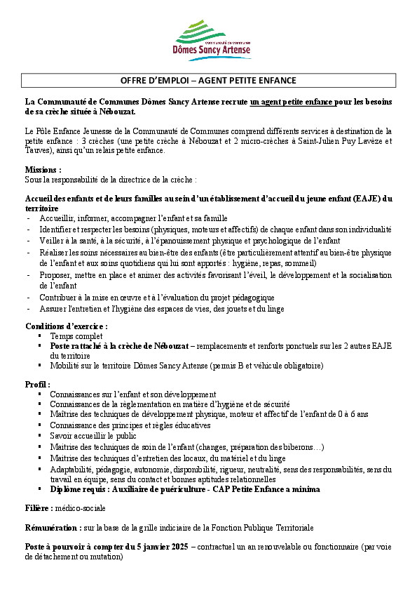 au 04 73 65 87 63 jusqu’au vendredi 19 décembre à 12 h 00.