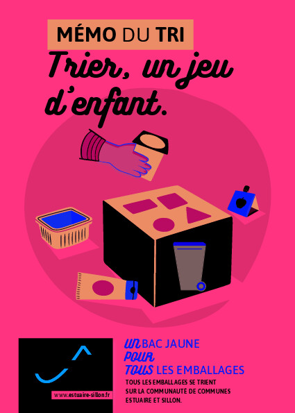 Plus d'informations sur la transition des sacs jaunes aux bacs jaunes: https://www.estuaire-sillon.fr/actualites-109/du-sac-jaune-au-bac-jaune-pour-tous-les-foyers-d-ici-2027-13769.html?cHash=69177924f89cebd453278d6300b5713b