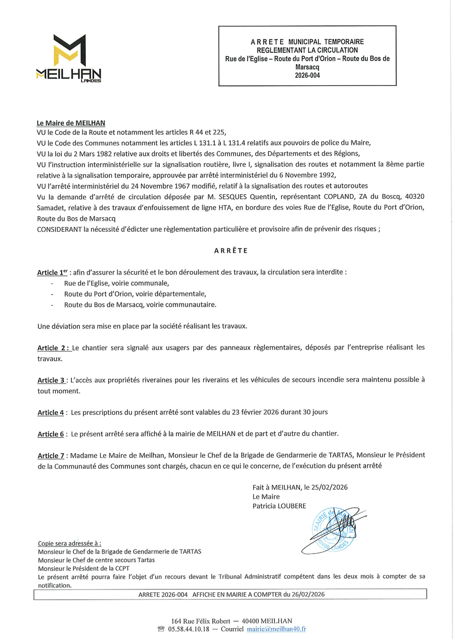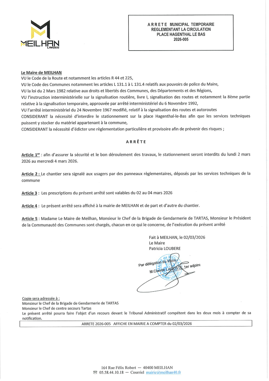 Merci de contacter le secrétariat de mairie au 05.58.44.10.18