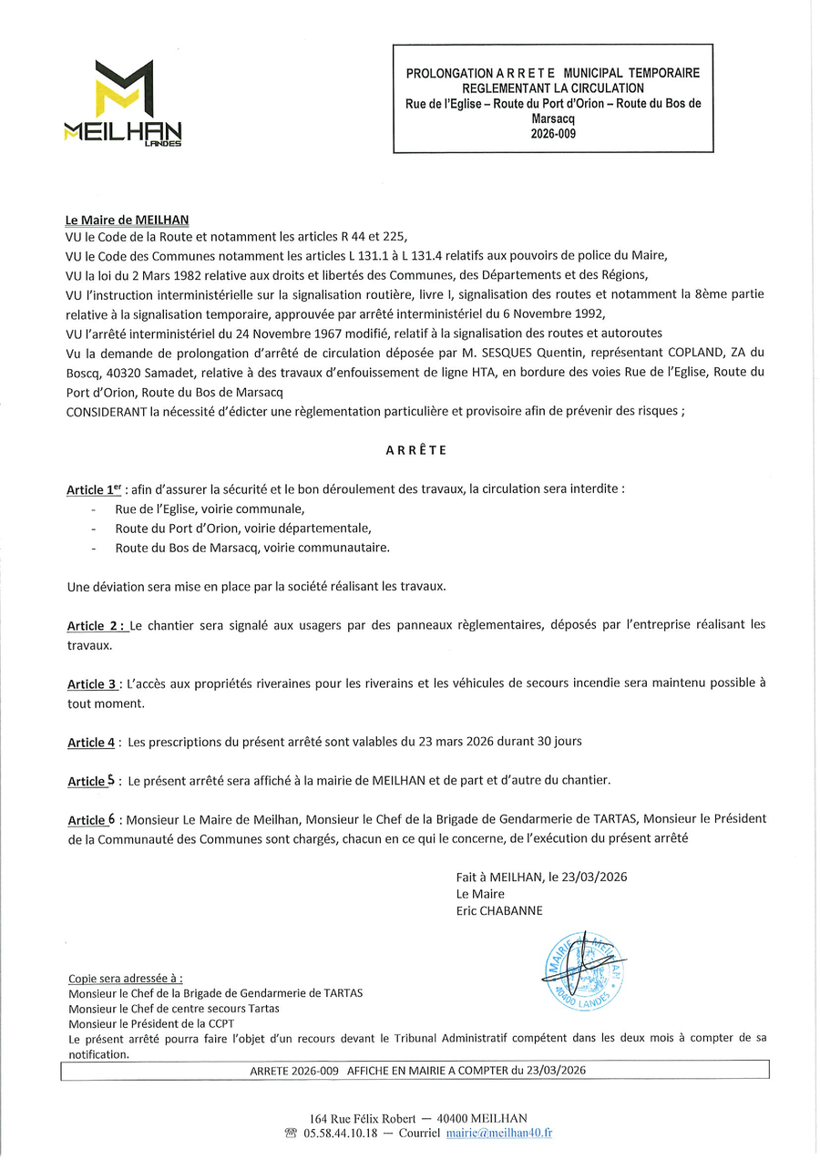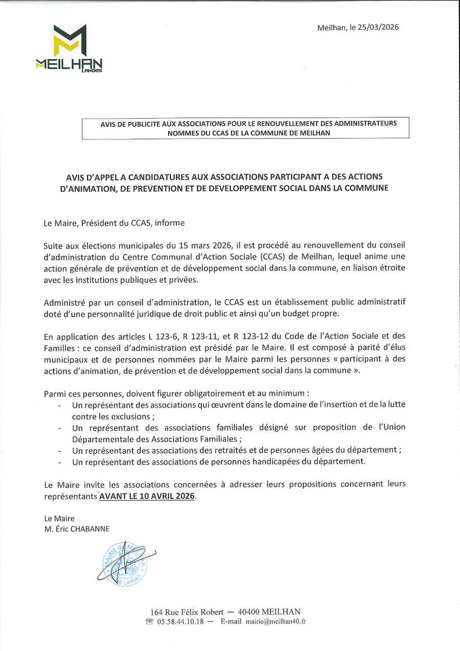 Merci de contacter le secrétariat de mairie au 05.58.44.10.18