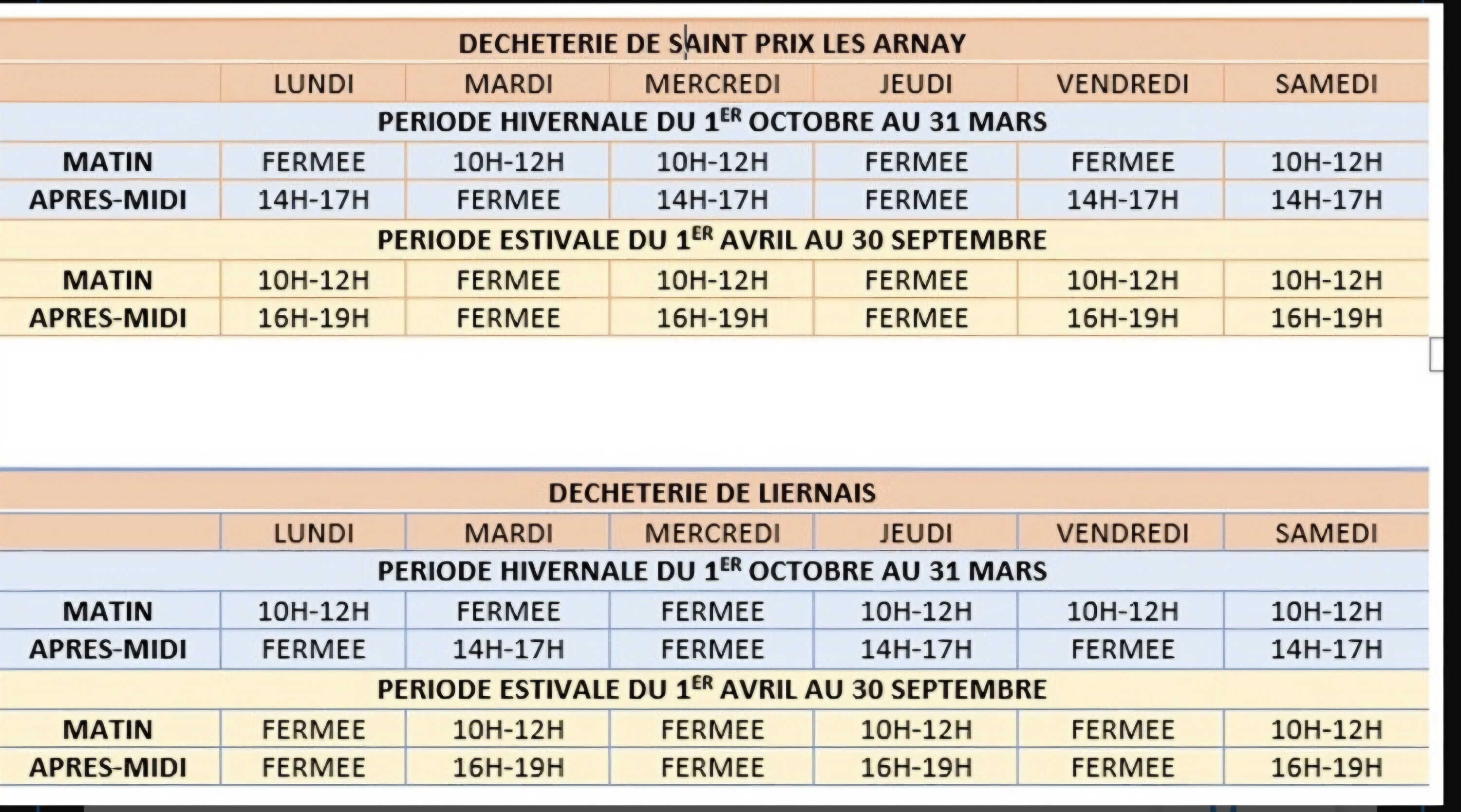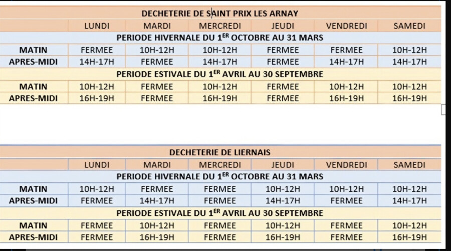 Les horaires des déchetteries du Pays Arnay Liernais changent .