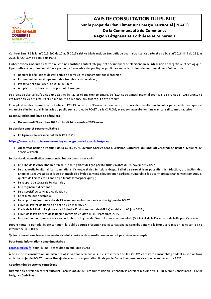 A compter du 21 octobre 2025 jusqu'au 21 novembre aura lieu en Mairie l'enquête publique portant sur deux demande de permis de construire en vue de la création d'une centrale photovoltaïque au sol d'une puissance supérieure 1 MWc sur la commune de Montbrun des Corbières et d'un poste de transformation sur la commune de Castelnau d'Aude déposés respectivement par la SAS MONTBRUN ENERGIE et SAS CASTELNAU HTB filiales de la SAS VALOREM.