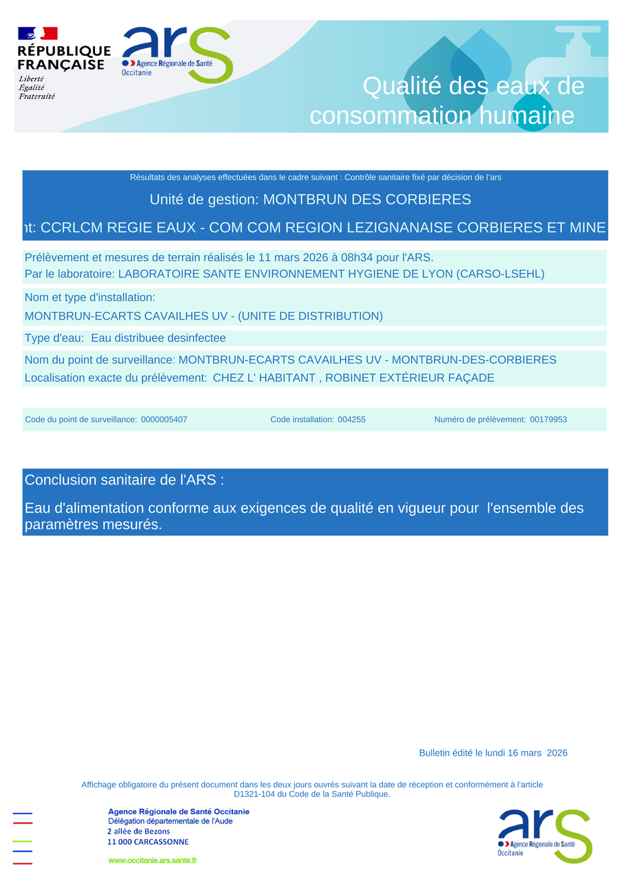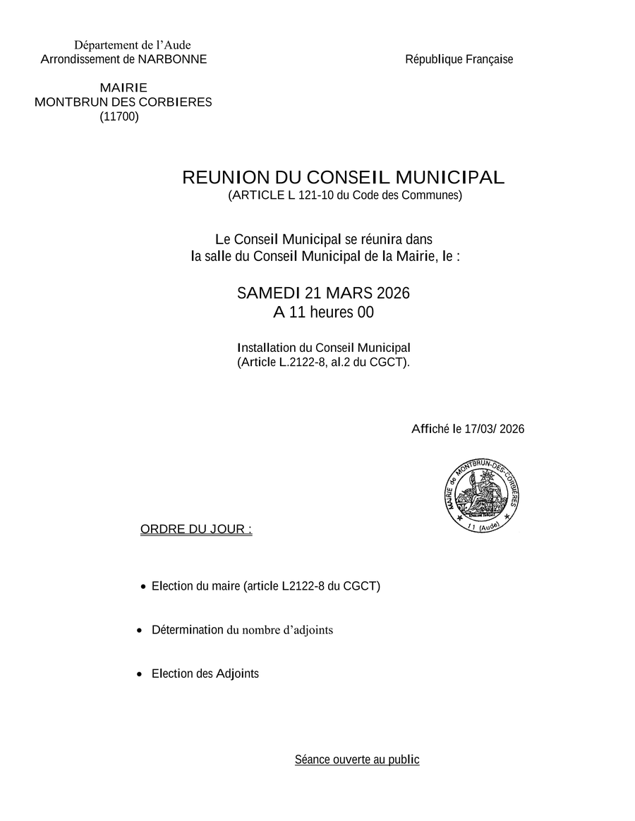 La Commune de Montbrun-des-Corbières a été reconnue en état de catastrophe naturelle par arrêté du 13 février 2026 (publié au journal officiel) au titre des phénomènes de pluie, inondation et coulées de boue, survenus entre le 17 janvier 2026 et le 20 janvier 2026.
