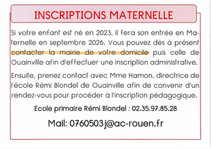 Un certificat vous sera délivré afin que vous preniez contact avec la mairie de Ouainville puis avec la Directrice de Ouainville.