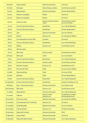 Autres dates et informations ci-dessous :