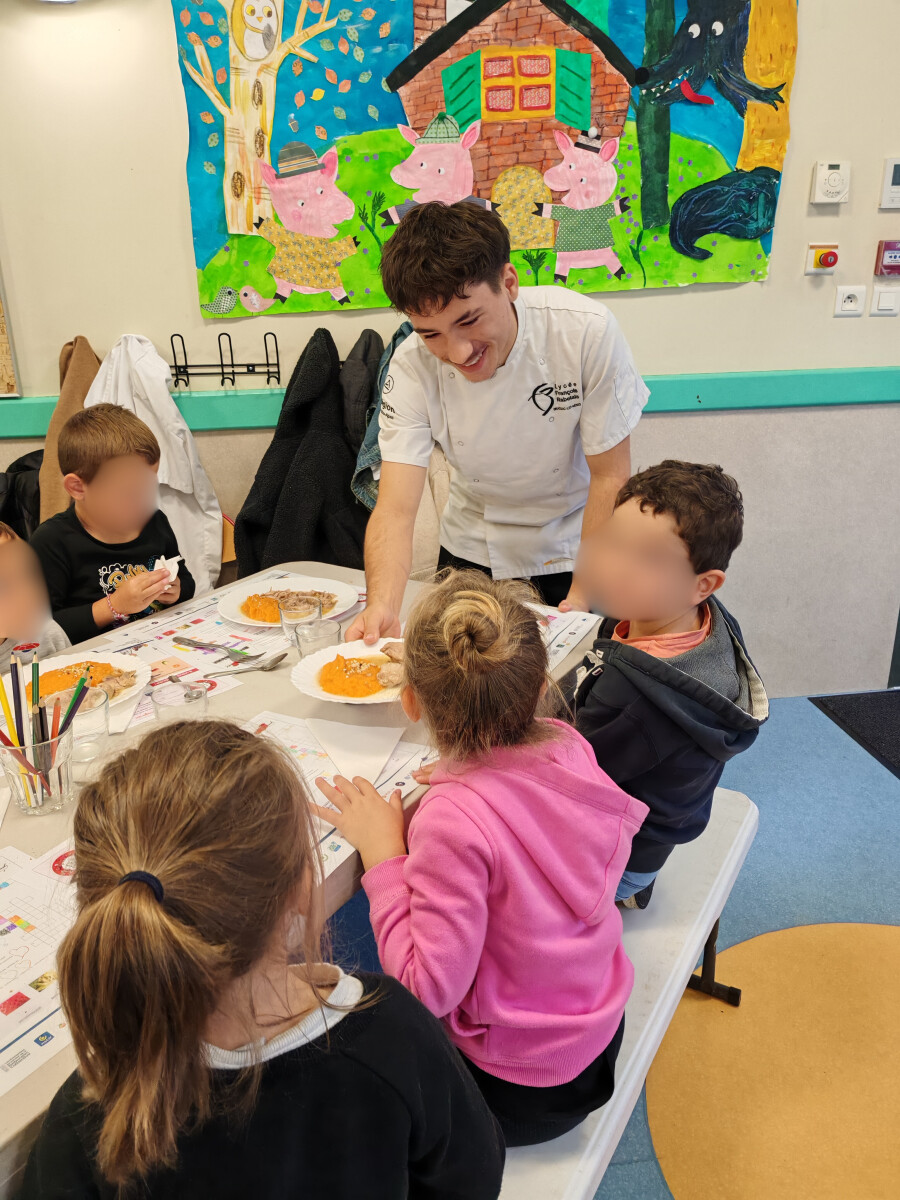 Cette belle expérience de vivre-ensemble a été possible grâce à l’esprit d’équipe et au dynamisme de nos agents municipaux, des enseignantes venues prêter main-forte pour l’occasion et de Mickaël Cubizolles, chef du restaurant M Bistro, qui a concocté pour les enfants un repas de produits locaux et de saison. Un grand merci à tous, ainsi qu’à Quentin, jeune apprenti au M. Bistro, venu aider au service et répondre aux nombreuses questions des enfants !