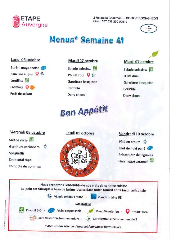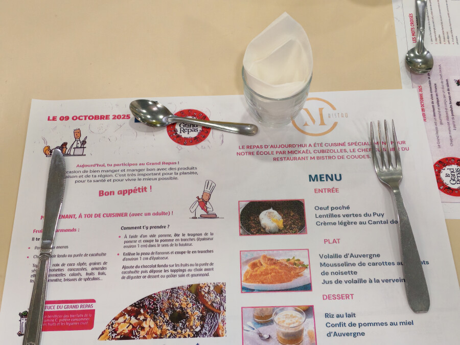 Aujourd’hui était un jour spécial à la cantine ! En effet, notre restaurant scolaire a participé au Grand Repas, une initiative nationale qui tend à promouvoir l’alimentation saine et durable.