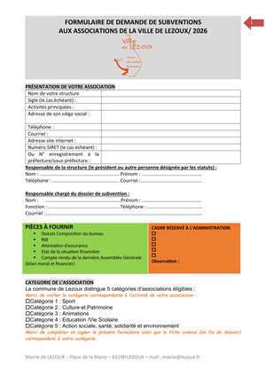 Le formulaire de demande de subvention 2026 accompagné du règlement sont disponibles sur le site internet de la commune.