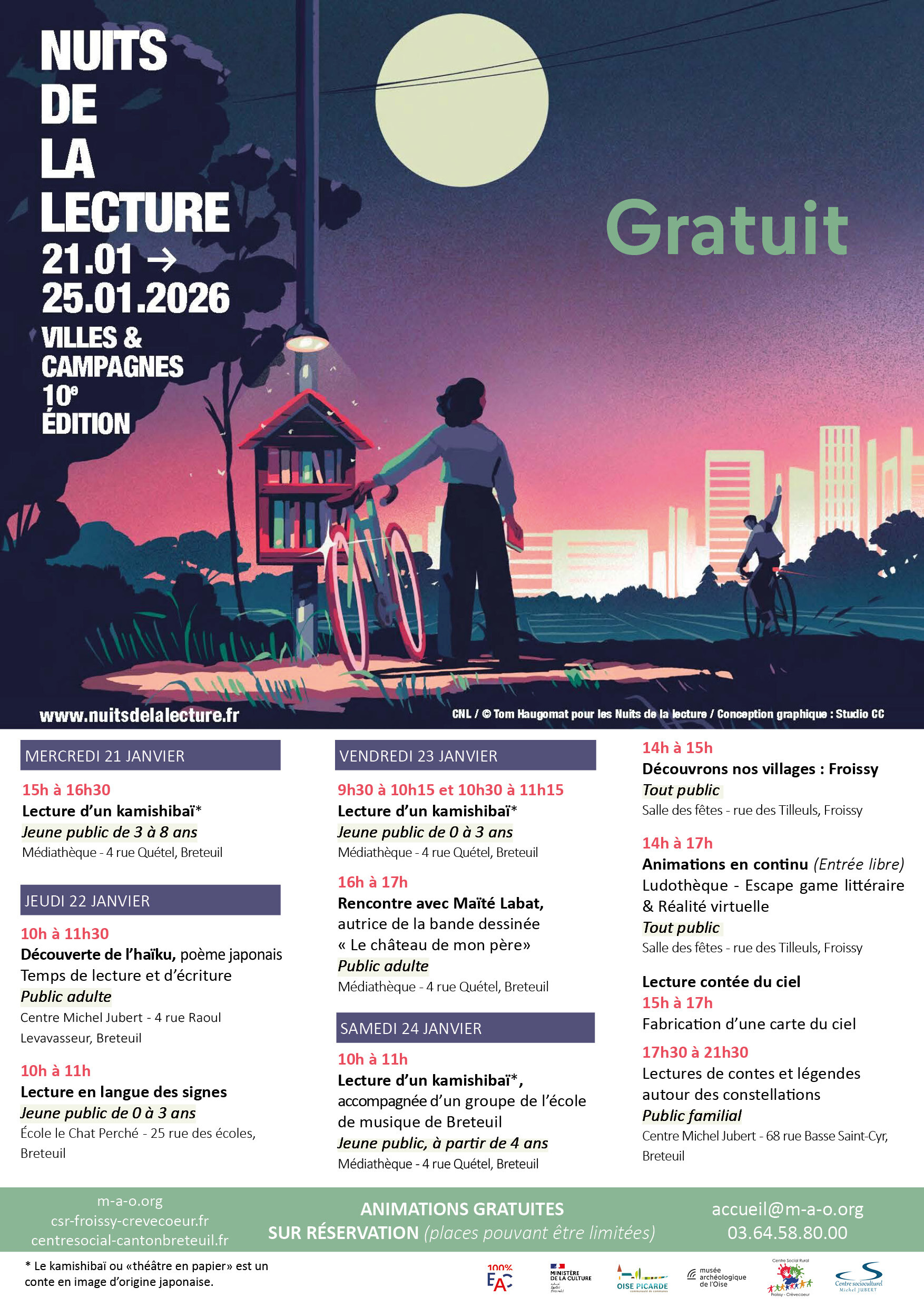 Le musée archéologique de l'Oise en partenariat avec la médiathèque de Breteuil et les centres sociaux de Breteuil et de Froissy-Crevecoeur, organise les Nuits de la lecture sur le territoire.