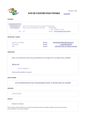 Alerte du 05/02/2026 à 10:15