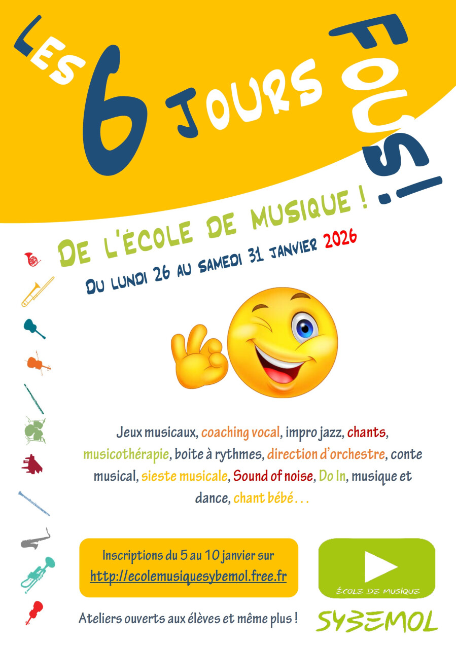 Les 6 jours fous sont de retour à l'école de musique, du 26 au 31 janvier 2026 !