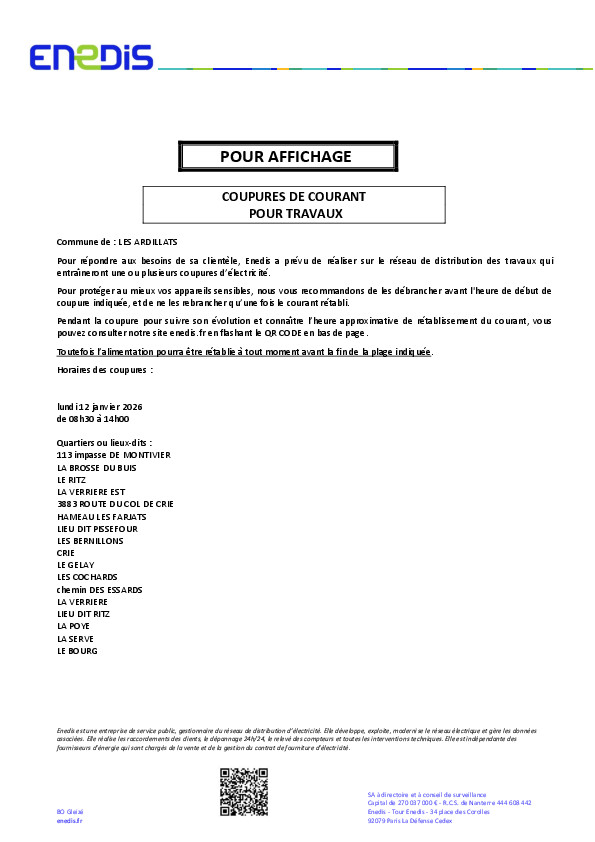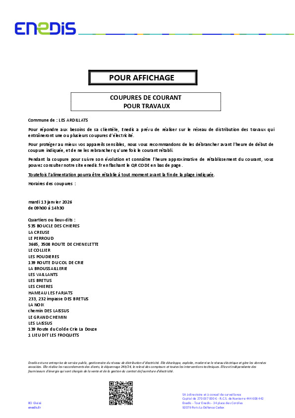 Le secrétariat de la mairie de Les Ardillats est ouvert au public :