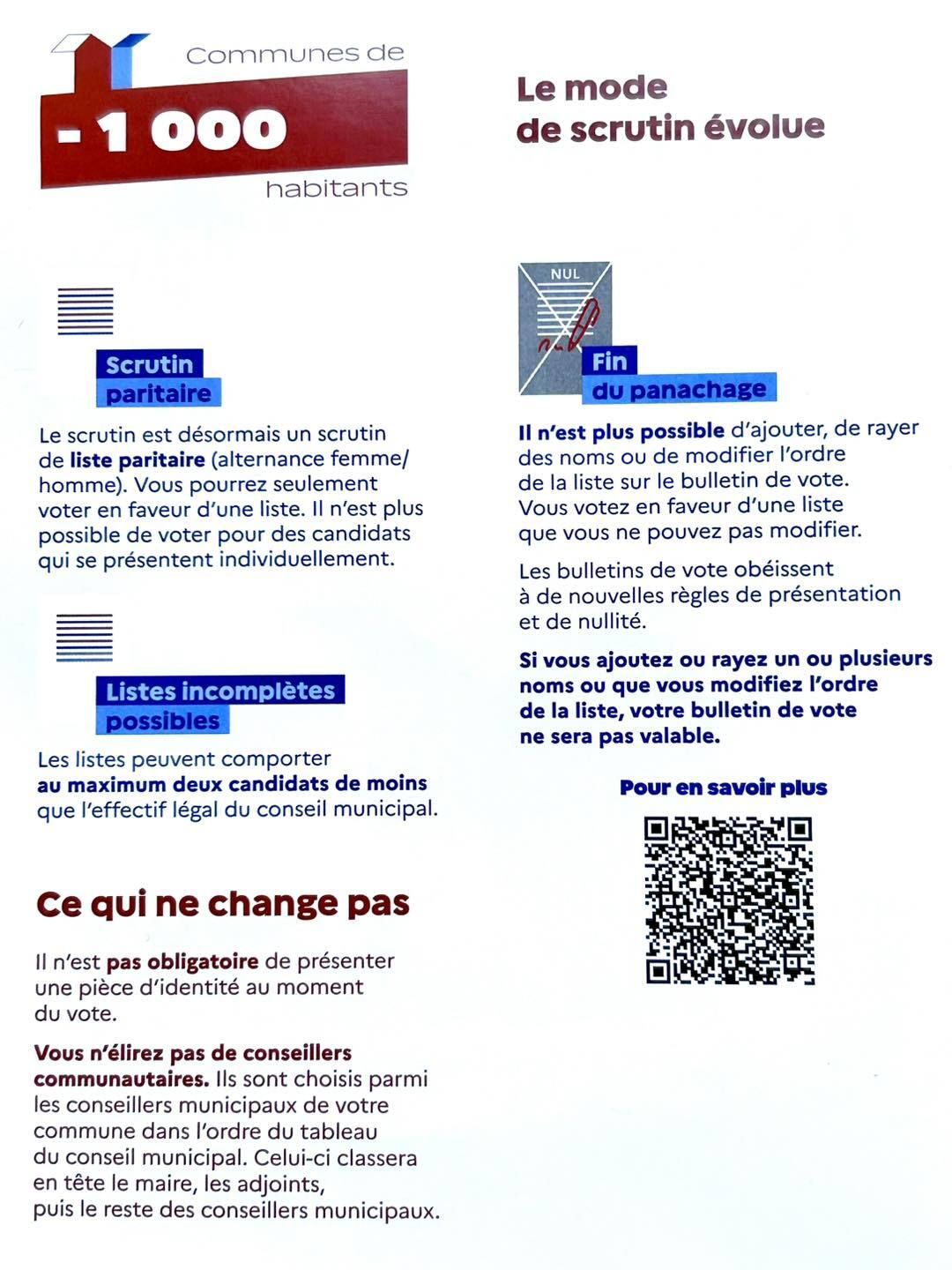 Changement le plus important : la fin du panachage, on vote pour une liste entière. Désormais, tout bulletin avec un nom rayé ou ajouté sera considéré comme un bulletin nul.