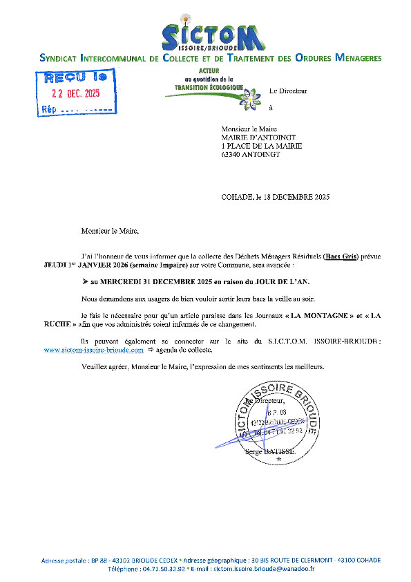 L'Agence Postale sera fermée du vendredi 26 décembre au vendredi 2 janvier 2026 inclus