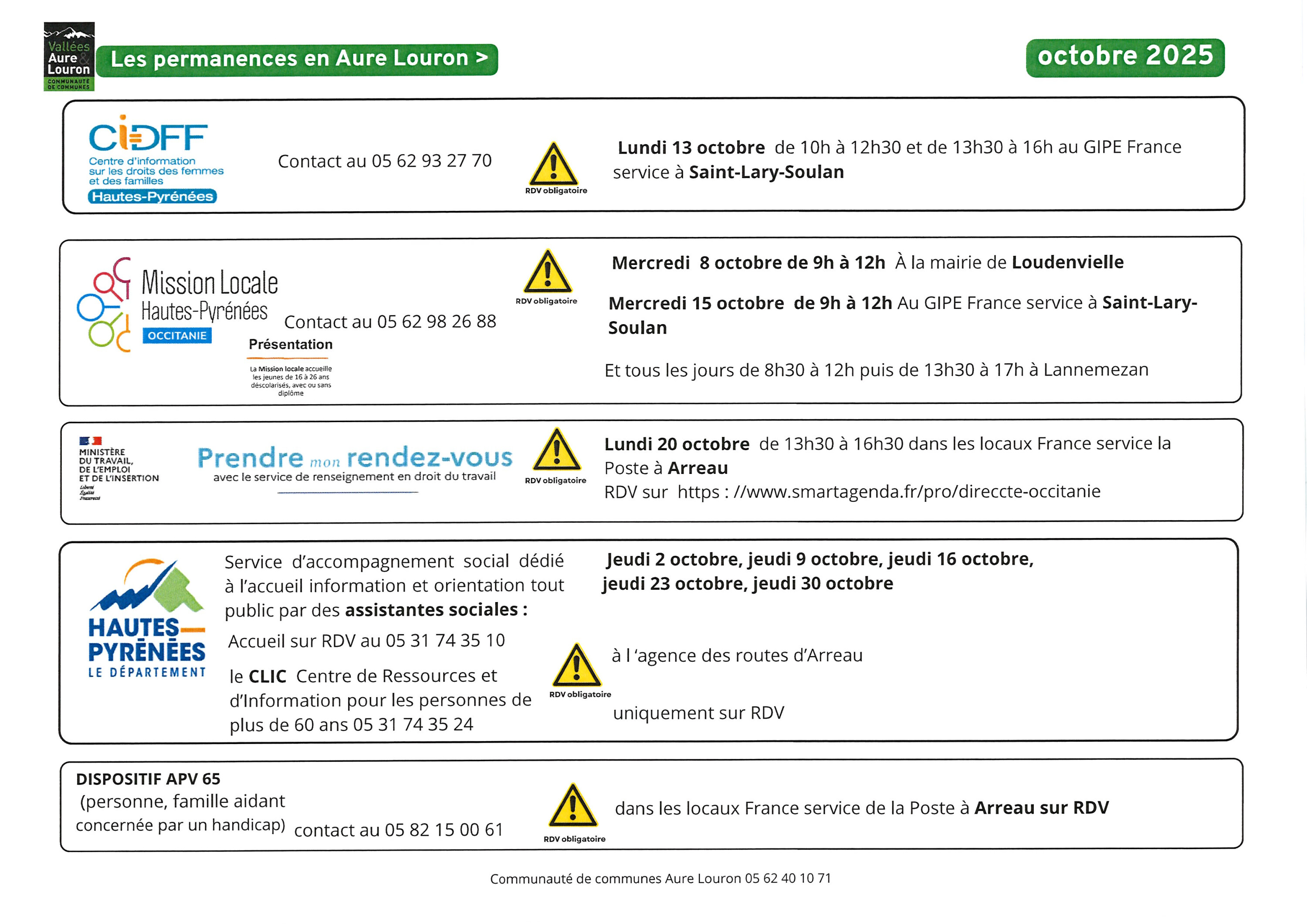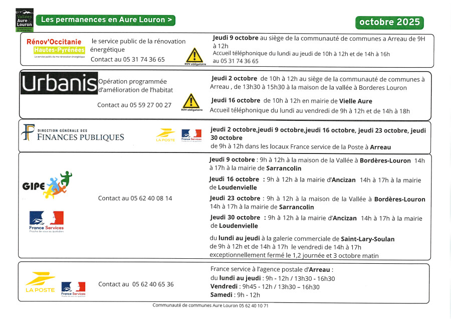 ☎ Renseignements auprès de la communauté de communes Aure-Louron