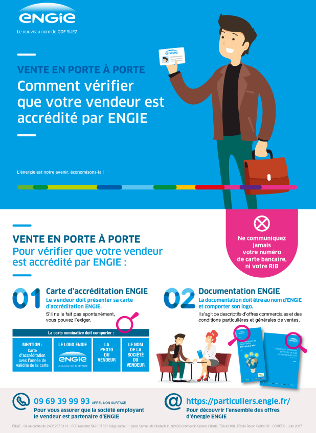 La société, ONE ENERGY, réalise du démarchage à domicile auprès des clients particuliers pour le compte du fournisseur d'énergie ENGIE.