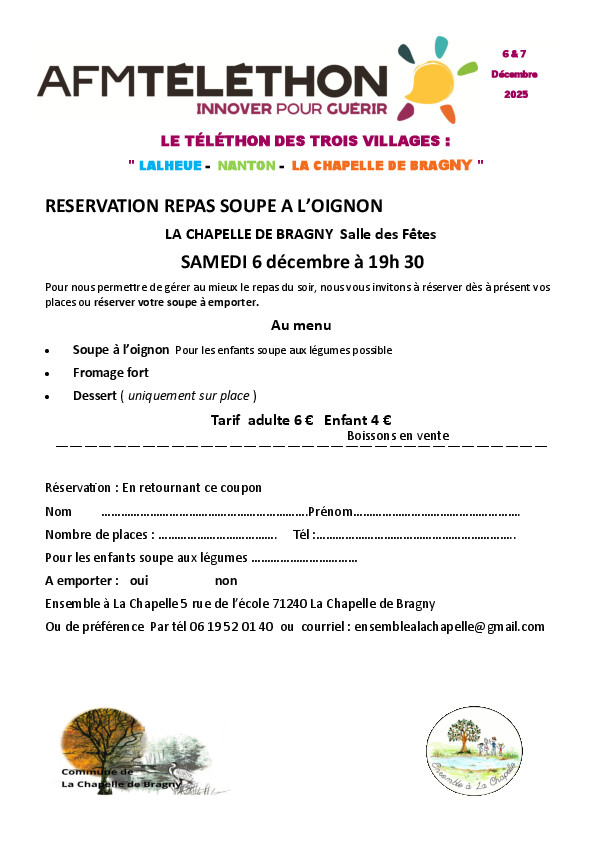 Merci pour l'intendance de réserver pour la soupe à l'oignon, fromage fort....