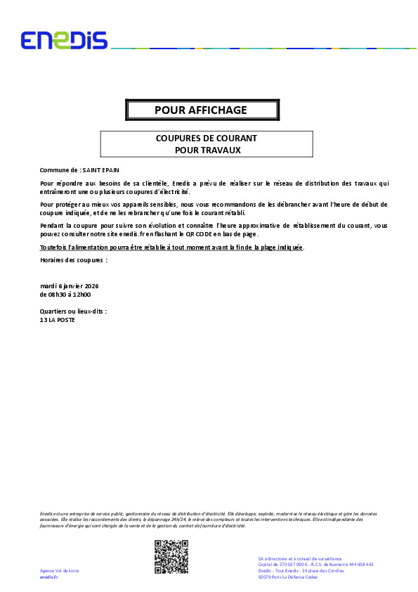 Inscription obligatoire au secrétariat de mairie ou à contact@saint-epain.fr