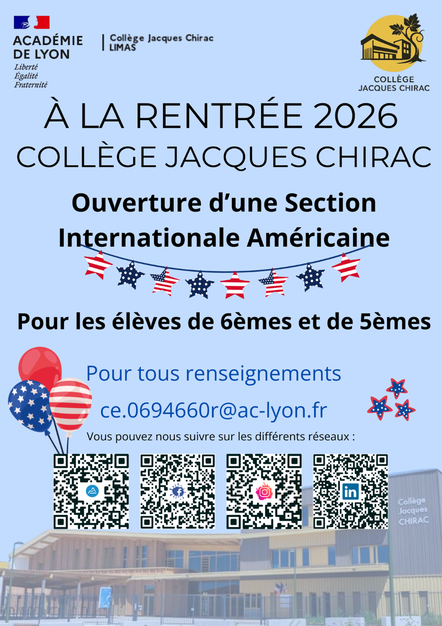 Le collège Jacques Chirac ouvrira à la rentrée 2026 une Section Internationale Américaine.