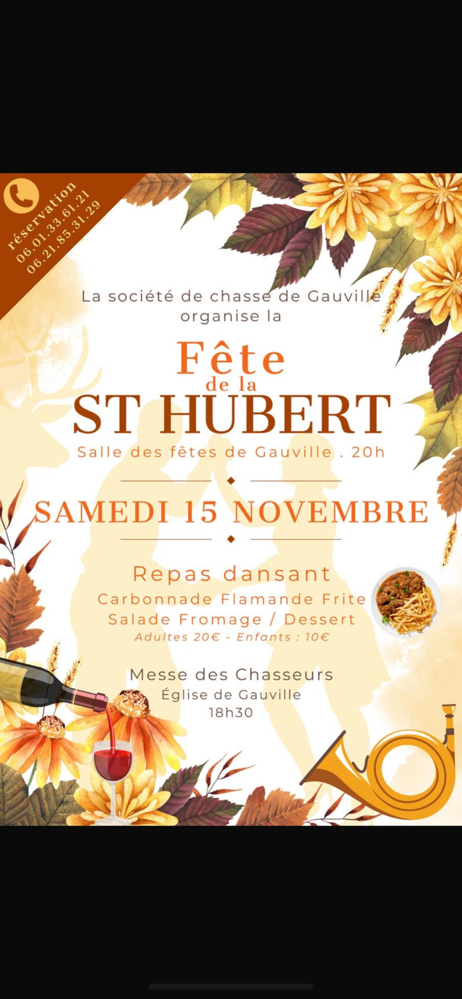 La Société de Chasse de Gauville vous rappelle qu'à l'occasion de la fête de la St Hubert, une messe sera donnée ce