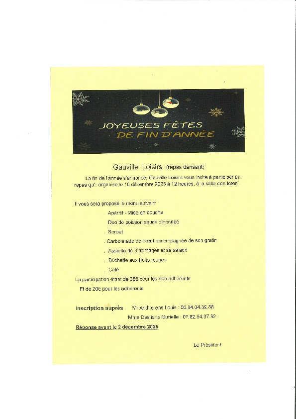 GAUVILLE LOISIRS organise un repas dansant