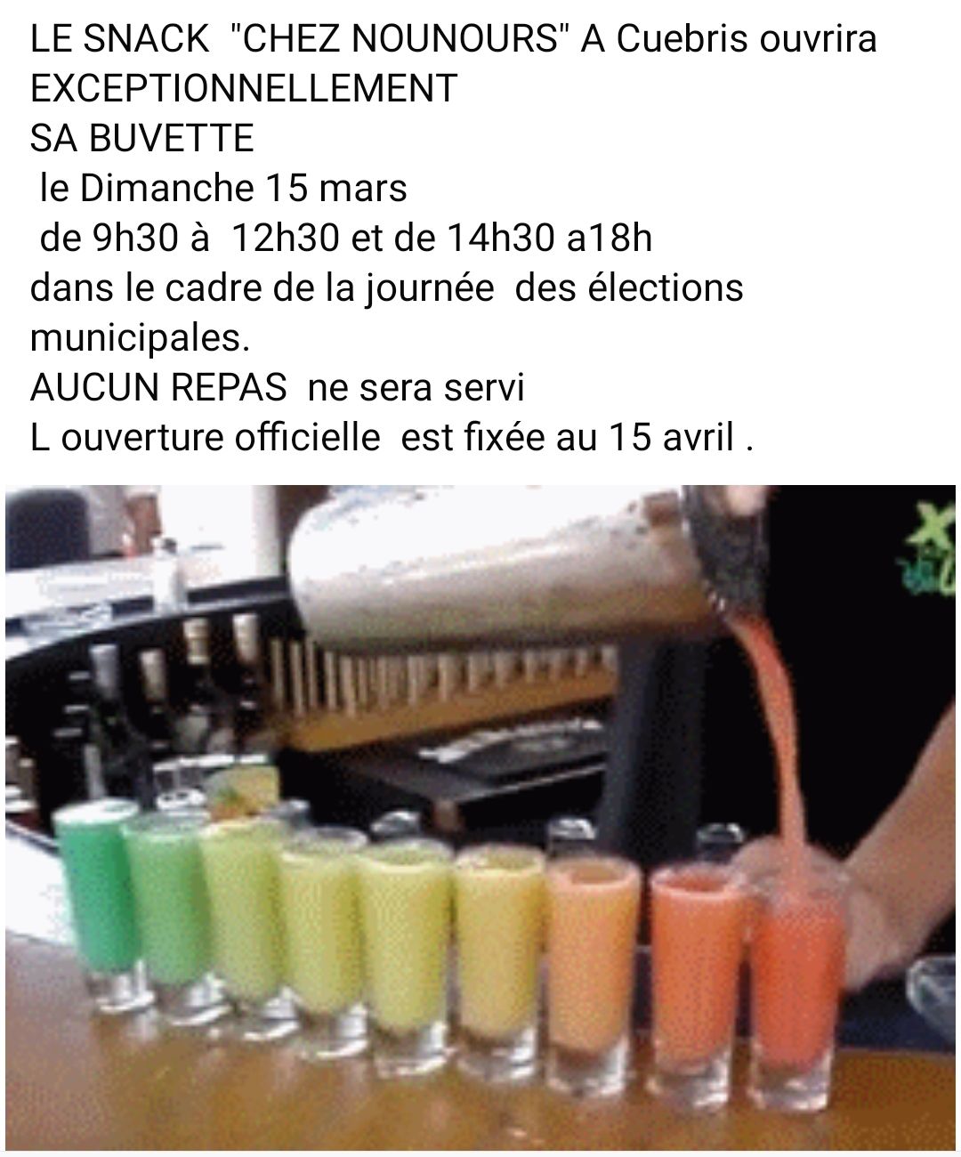 Le marchand de fruits et légumes ne pourra venir à Cuébris ce samedi 14 Mars.