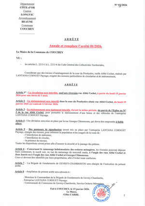 KEOLIS informe les usagers, que la ligne régulière n° 114 sera déviée par le bas du village (chemin de la Reculée, rue Maréchal Leclerc et rue de la Maladière), les LUNDI 09 ET MARDI 10 FEVRIER 2026.