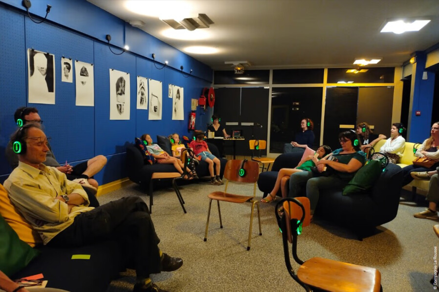 Un espace d’écoute particulier et intime qui invite les spectateurs à fermer les yeux et à expérimenter l’espace du noir comme territoire de l’imaginaire.