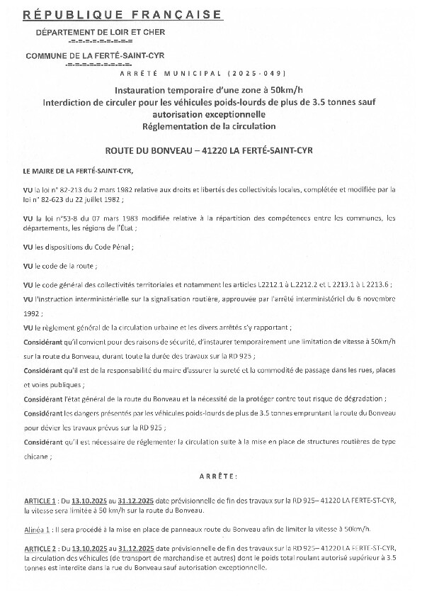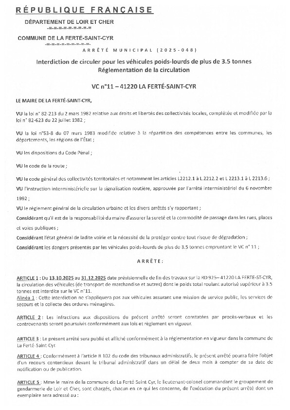 est interdit de la circulation pour tous véhicules et poids lourds de plus de 3.5 tonnes