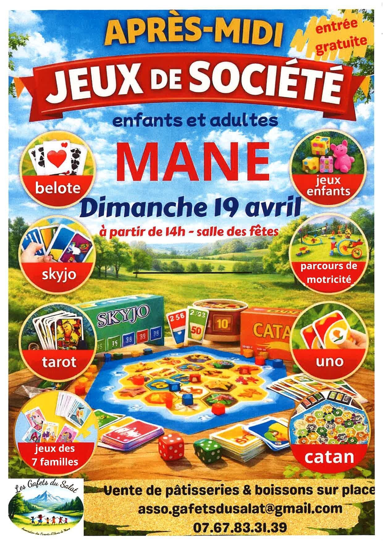 Après-midi jeux de société à Mane le dimande 19 avril à partir de 14h.