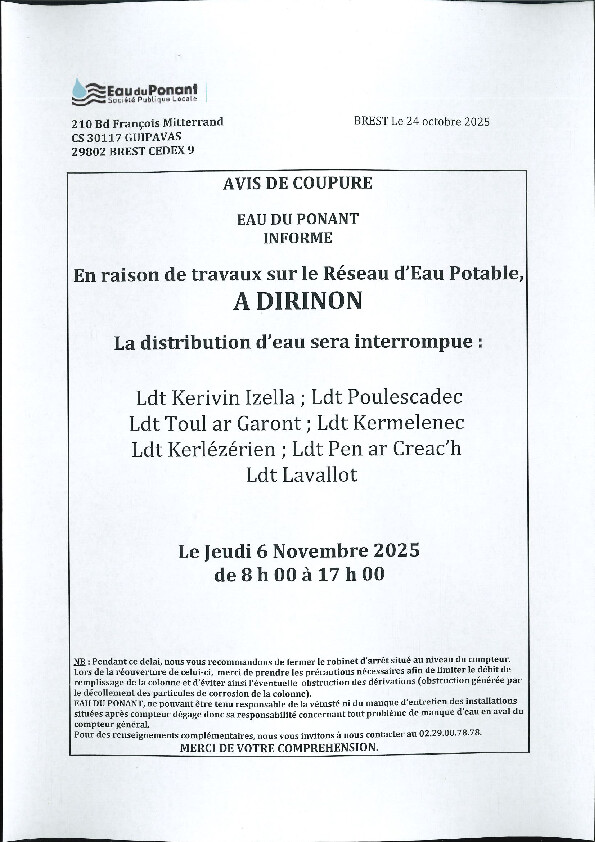 Le jour des travaux, si vous avez besoin d’information complémentaire, vous pourrez nous joindre au numéro de téléphone de dépannage 09 72 67 50 + n° de votre département (appel non surtaxé).