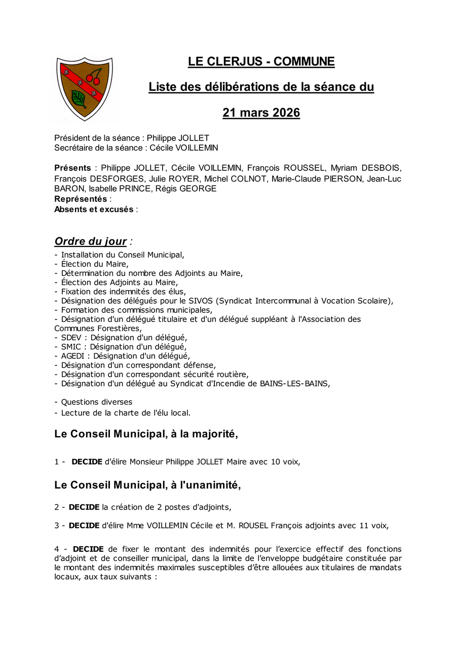 Consultez l'actualité des autres communes autour de Le Clerjus
