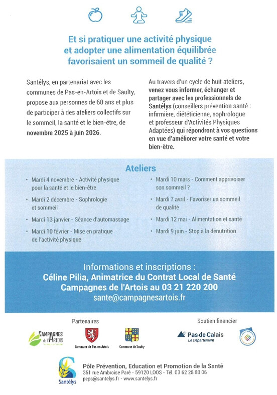 Inscriptions au 03.21.220.200 auprès de Céline Pilia, animatrice du contrat local de santé de la communauté de communes.